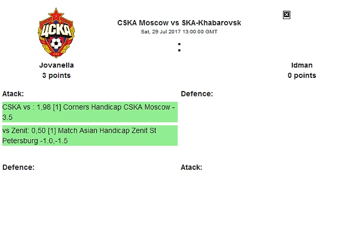 Jovanella сразится с Idman в первом матче тура и думаю ему нужно быть настороже, хозяин СКА-Хабаровска пока не сделал ни одного захода, ни говоря уже об очках и думаю будет грызть землю но зацепится за что-нибудь с крепким середняком на выезде.