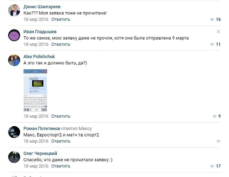 Как только первые отборочные результаты были объявлены, сотни людей (у кого тоже остались непрочитанными заявки) отблагодарили «Матч ТВ» за честность: