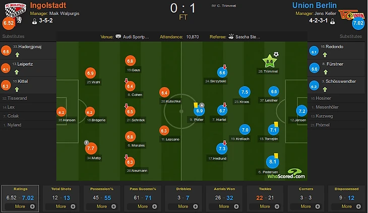 Матч, который можно смело назвать центральным, был сыгран в Ингольштадте, где местный клуб принимал Унион Берлин.