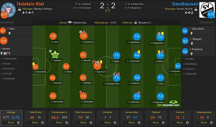Оценка команд по мнению автора: Киель - 3, Зандхаузен - 3.