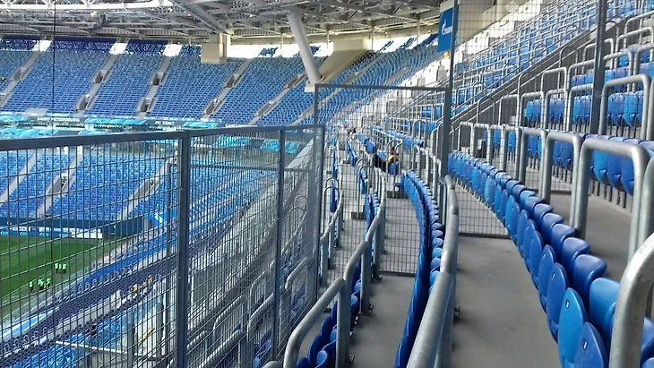 Фан сектор для болельщиков Спартака огородили металлической сеткой, как и подобающе для свирепых наф нафов