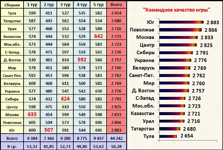Самой яркой на этом этапе по "качеству игры" (набранные фэнтази-очки) была команда "Юг"- 2883 очка за 5 туров