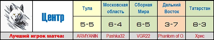 "Центр". Мастера фэнтази с Центрального региона России могут быть довольны стартом своей команды. Ровный состав основы, когда каждую игру на поле виден новый лидер сборной, позволил команде подняться на 4 место тур.таблицы...