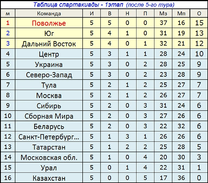 Лидер Чемпионата (после 5 туров) - сборная "Поволжье" - 15 очков!!!