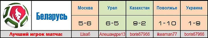 Бомбардиры - boris67966, Шваб - по 3 мяча