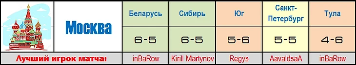 "Москва". Столичная команда имеет в составе очень сильных мастеров фэнтази. И на старте казалось, что команда их будет непобедима... Но на финише этапа москвичи забуксовали и скатились в середину турнирной таблицы... Стоит еще отметить, что игры их всегда носят напряженный и упорный характер - разница в итоговом счете всегда минимальна...