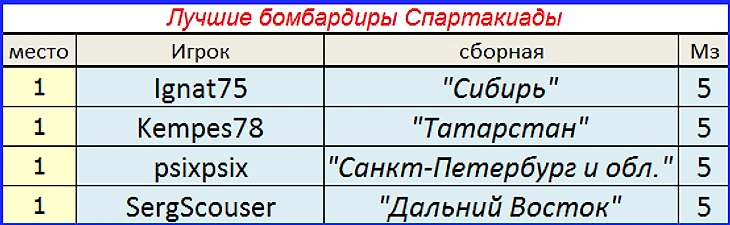 Бомбардиры - Denjo, ArseneAl77, JurySed , Razamanaz, Sparta4_44 - по 3 мяча