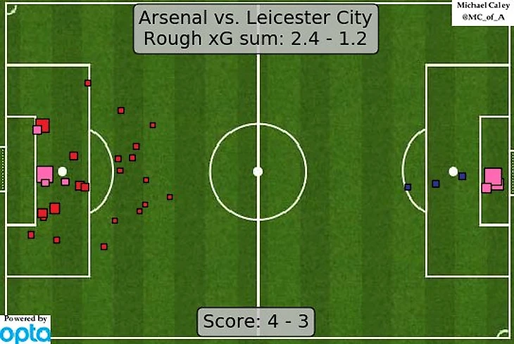 Модель ожидаемых голов говорит о справедливости результата, но здесь важно другое. Заметьте что все голы Лестера забиты из вратарской площади. У Арсенала все еще есть проблемы в защите (особенно при стандартах), и как знать исезнут ли они по выздоровлению Мертезакера и Мустафи. Также стоит отметить что у хозяев набралось очень много ненужных ударов из-за штрафной площади. Тут дает знать о себе второй тайм, а вернее его концовка.