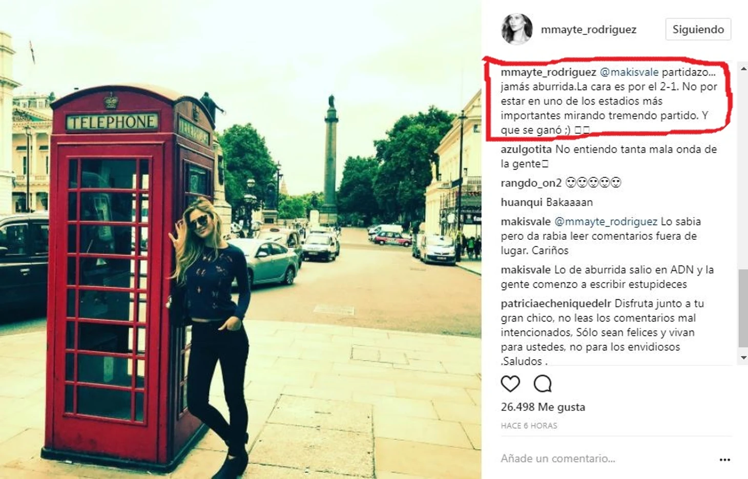 Чилийская актриса Майте Родригес прокомментировала фото с матча в своем Инстаграм.