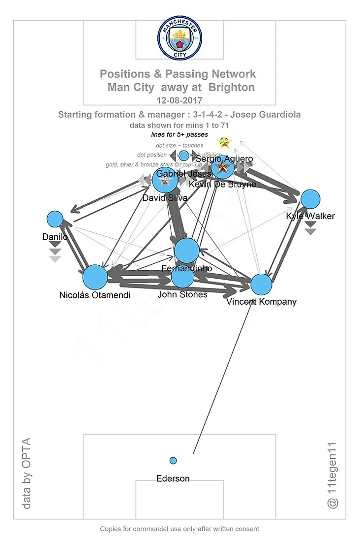 Брайтон возвращается в высший дивизион. Попав в первом же матче на Манчестер Сити расчитывать на очки не приходится. Старт сезона с поражения для чаек, но винить их вообщем-то и не в чем. Вопрос был лишь в том когда Сити забьет и, к чести новичков, на гол у горожан ушло более полтора тайма. Выводов по матчу сделать никаких нельзя так как соперники не сопоставимы. У меня лишь один вопрос к Пепу: Зачем в этом матче надо было играть в три центральных защитника? Да и Фернандиньо "сидел" очень низко