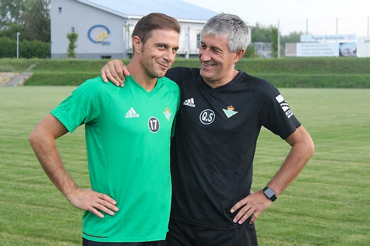 Но главное – фигура тренера. Из «Лас Пальмаса» в «Бетис» пришел творить Кике Сетьен (на фото с Хоакином, который все еще играет). На Канарских островах 58-летний тренер создал ярчайшую команду, которая по качеству футбола в отдельных матчах превосходила в Испании всех (да, включая грандов). Но «Лас Пальмас» экономически не может потянуть амбиции Сетьена, им бы в серединке таблицы затеряться. У «Бетиса» возможности шире, а уж к возвращению в Европу местная публика готова очень давно.