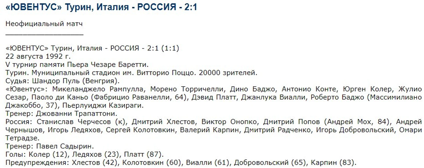 Вот такая вот знаменательная дата- 22 августа. Вот так вот переплелись пути Ювентуса и сборной России четверть века назад.