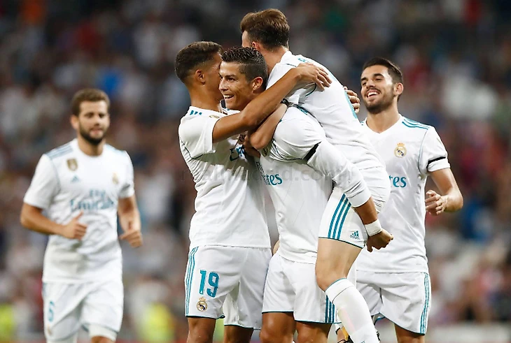 Реал забивает! Перехватили мяч футболисты мадридского клуба, Роналду прострелил с левого фланга и Майораль забил в пустые ворота.