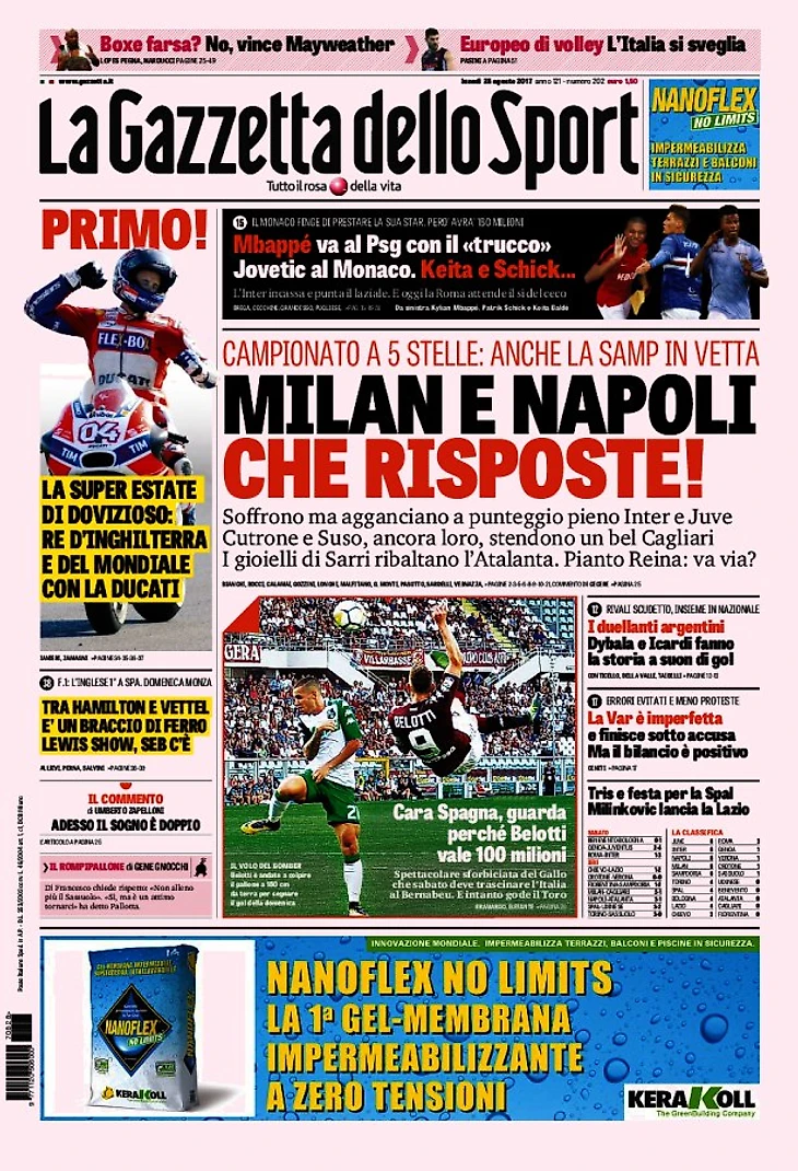 Феномен! Заголовки Gazzetta, TuttoSport и Corriere за 28 августа