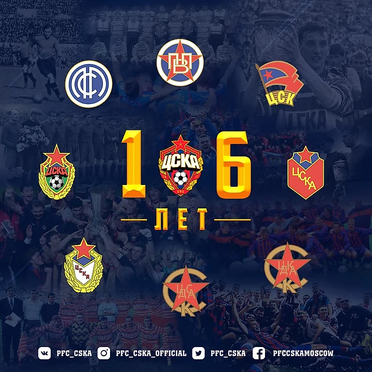 Красно-синие 13 раз становились чемпионами страны (1946, 1947, 1948, 1950, 1951, 1970, 1991, 2003, 2005, 2006, 2013, 2014, 2016), 12 раз выигрывали национальный Кубок, 6 раз – Суперкубок. В 2005 году ЦСКА первым среди российских клубов завоевал Кубок УЕФА. История названия: 1911 – 1923 – ОЛЛС (Общество любителей лыжного спорта). 1923 – 1928 – ОППВ (Опытно-показательная площадка Всевобуча, затем – Военведа). 1928 – 1951 – ЦДКА (Центральный дом Красной Армии). 1951 – 1957 – ЦДСА (Центральный дом Советской Армии). 1957 – 1960 – ЦСК МО (Центральный спортивный клуб Министерства обороны). 1960 – 1994 – ЦСКА (Центральный Спортивный Клуб Армии). 1994 – ПФК ЦСКА (Профессиональный футбольный клуб ЦСКА).