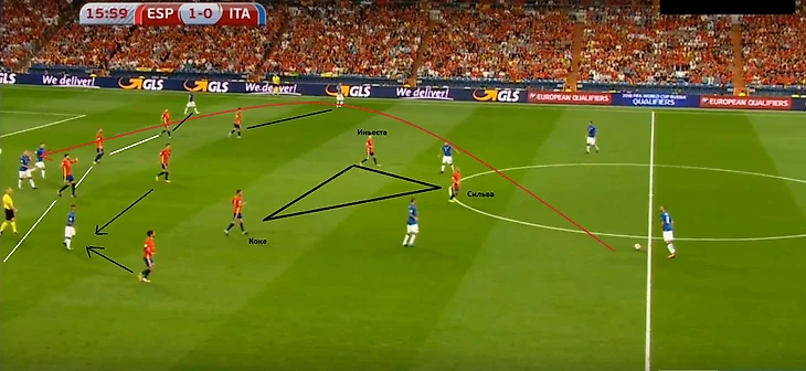 Расколоть треугольник Иньеста - Коке - Сильва для Вентуры оказалось непосильной задачей. Весь первый тайм Веррати и Де Росси попадались в него, теряли мяч или откатывали его назад. Больше половины передач, сделанных Марко и Даниэле на чужой половине поля, шли назад или поперек.