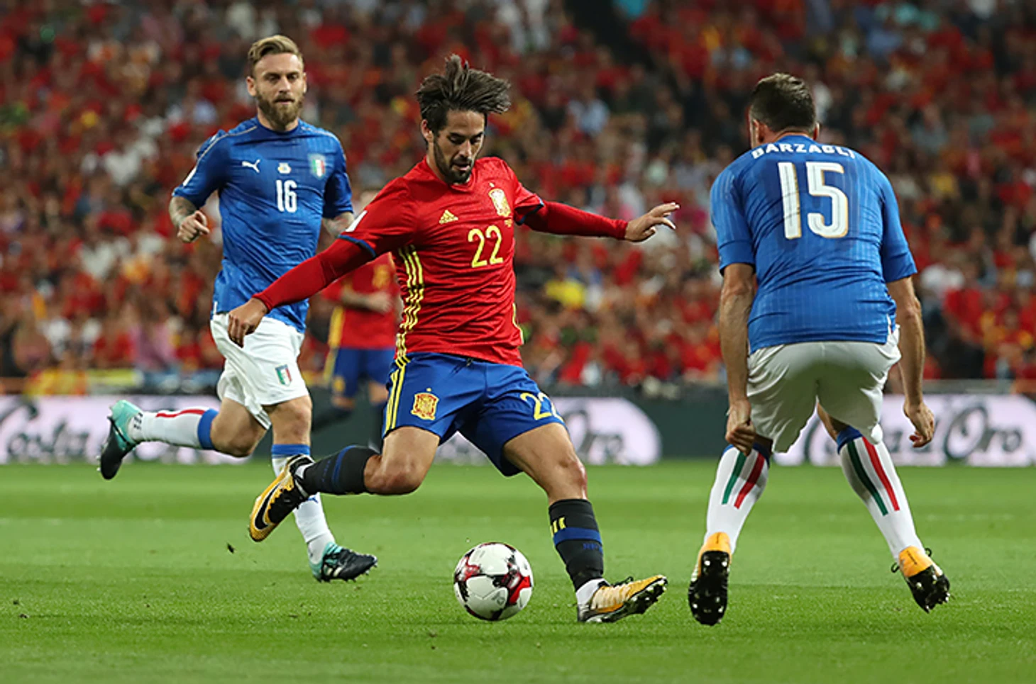 «Где полузащитник?» – впервые эту фразу Альберто Дзаккерони, комментировавший матч на RAI, произнес на пятой минуте и впоследствии повторял ее всю трансляцию. Однако каждый раз ему сообщали, что из запасных разминается кто угодно – от Эдера до Эль-Шаарави, но только не Марко Пароло. Лишь во второй тайме к ним присоединился Лоренцо Пеллегрини, но c.t. так и не прибегнул к его услугам. 4-2-4 или 4-4-2 – вопрос дискуссионный, но с самого начала всем было понятно, что так испанцев не победить.