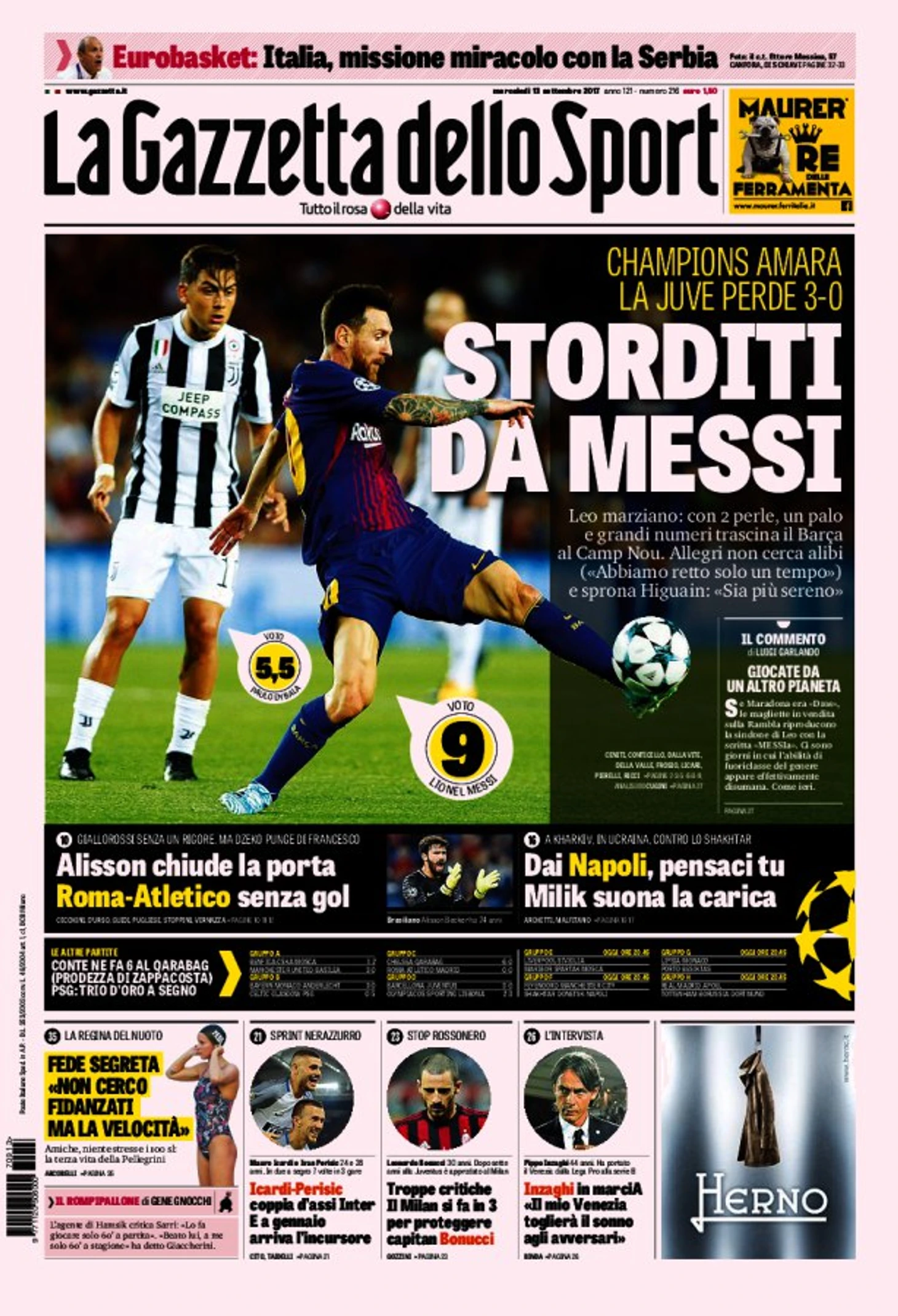 Ошеломлённые Месси. Заголовки Gazzetta, TuttoSport и Corriere за 13 сентября
