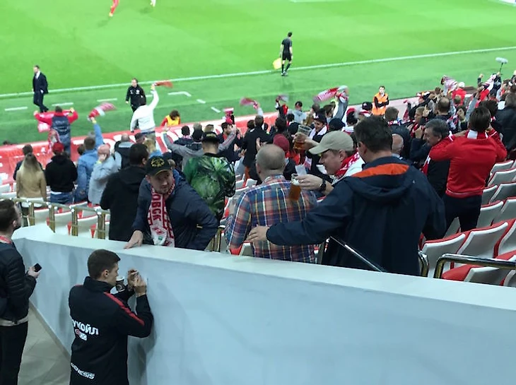Роман Зобнин в это время стоял, прикусив стакан с чаем, и рисовал автограф болельщику.