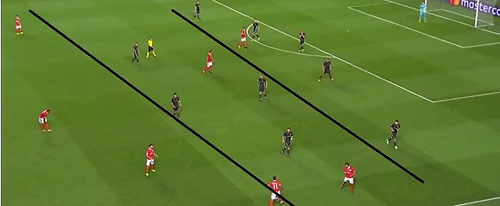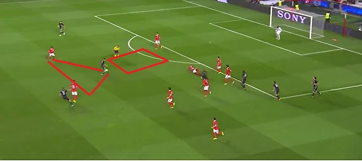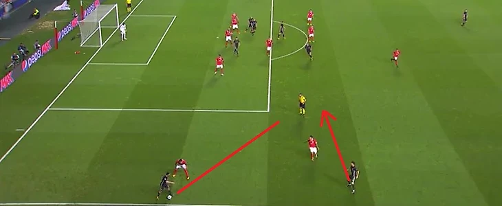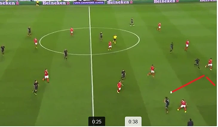 В обороне основные проблемы португальцев начинаются в атаке. Как только Бенфика теряет мяч, это чуть ли сразу не становится голевым моментом, образуются зоны через, которые можно организовать хорошую атаку, за счет быстрых игроков с хорошим дриблингом.