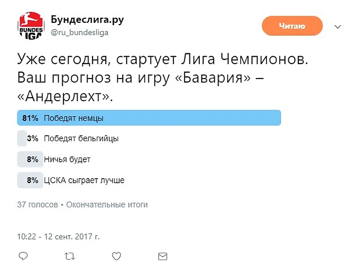 Кстати, вчера перед матчем подписчики подавляющим большинством ставили на победу немцев