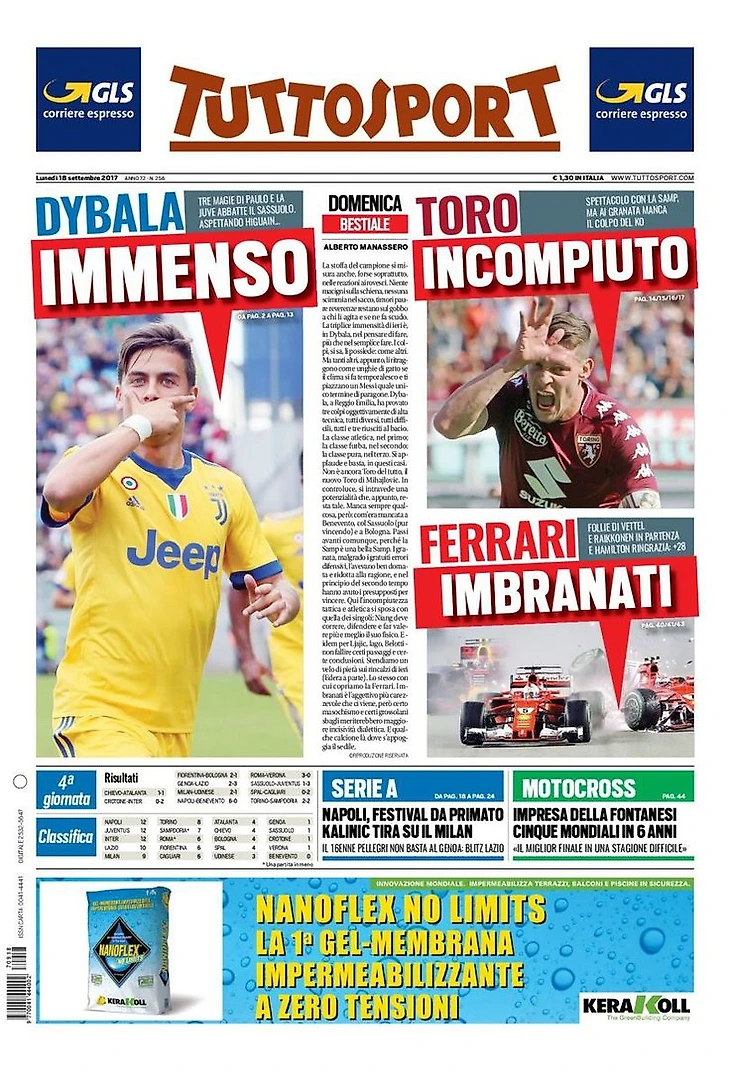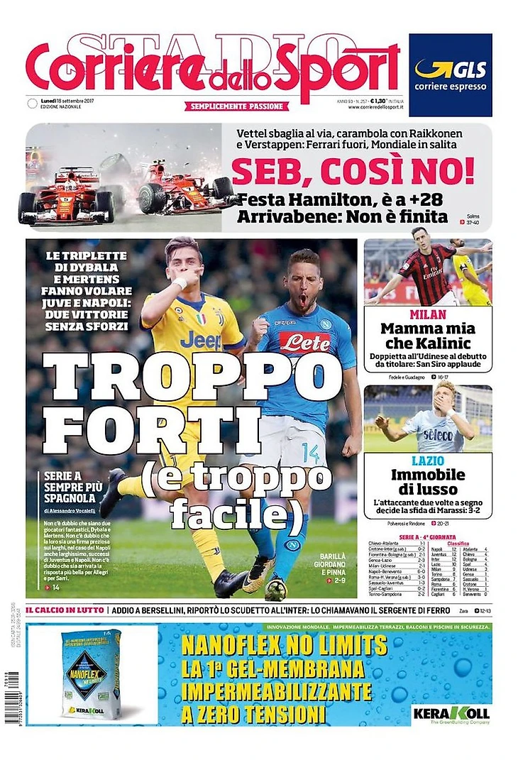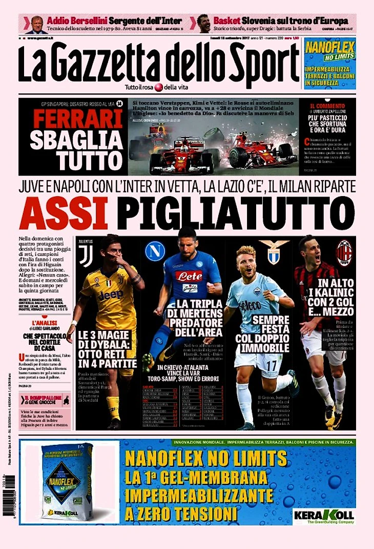 Всеобъемлющие звёзды. Заголовки Gazzetta, TuttoSport и Corriere за 18 сентября
