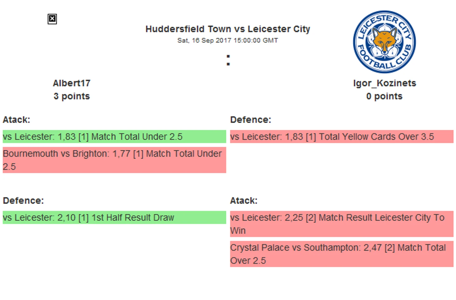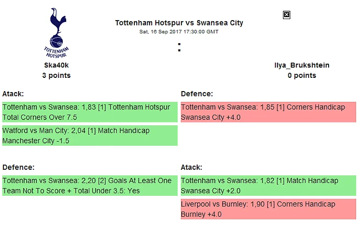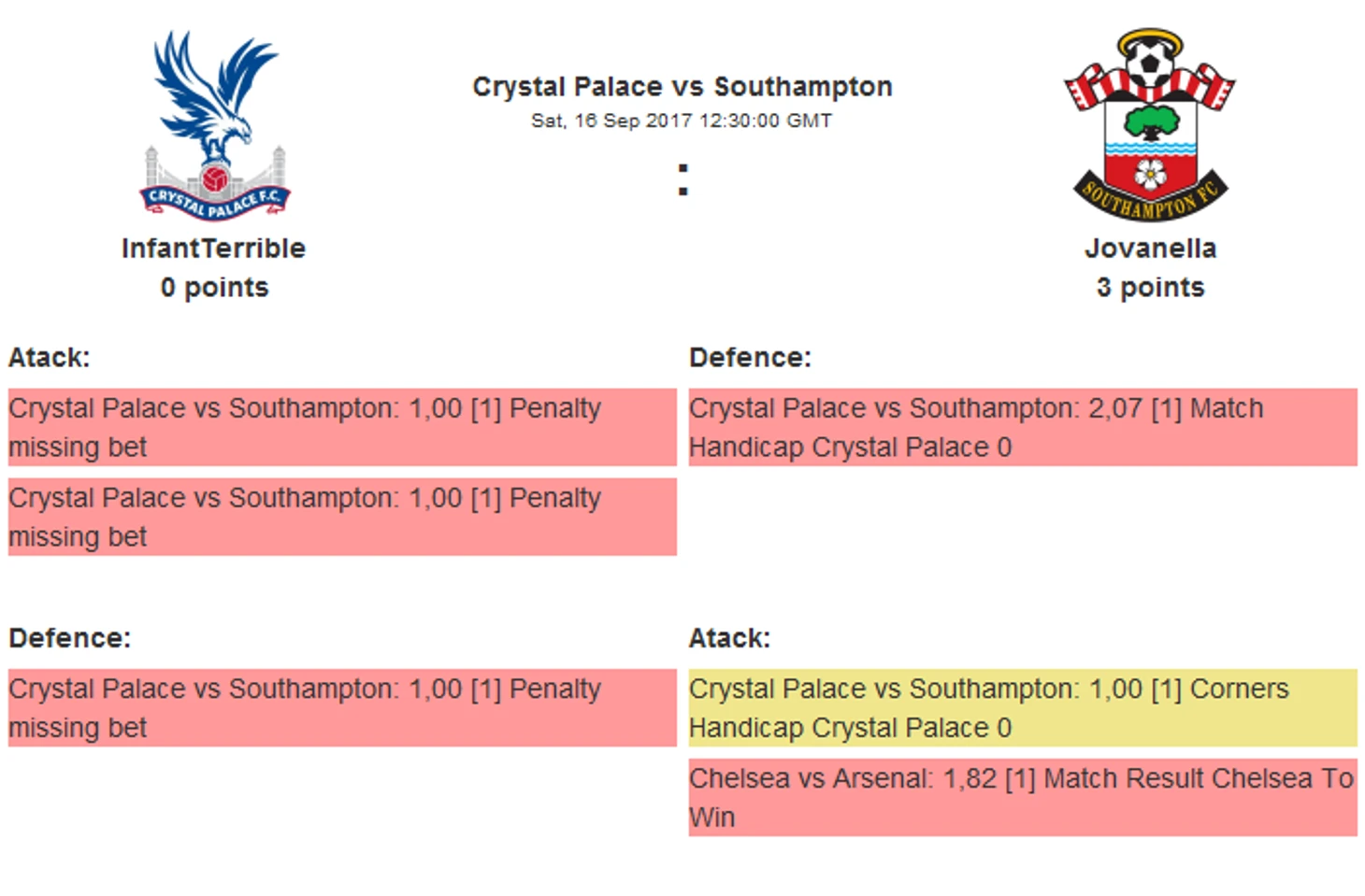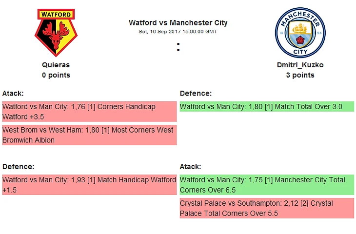 Другая мощная схватка состоялась между Jovanella и Quieras, последний закатил 2 прекрасных прогноза и рассчитывал на очки, но Jovanella отлично прочитал тур, залил все 3 ставки и вырвал 3 очка в общий зачот! Удивительно на факт, у Jovanella такая же стата что и у лидера Ska40k +8-4, но на 5 очков меньше, не везет с календарем!