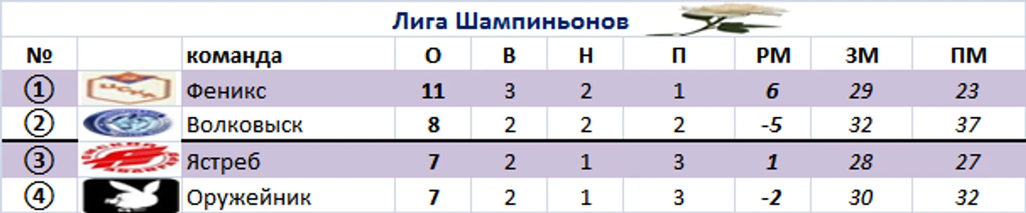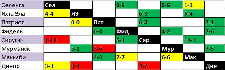 Патриот и Фидель набрали по 10 баллов, разница мячей лучше оказалась у загадочного клуба.