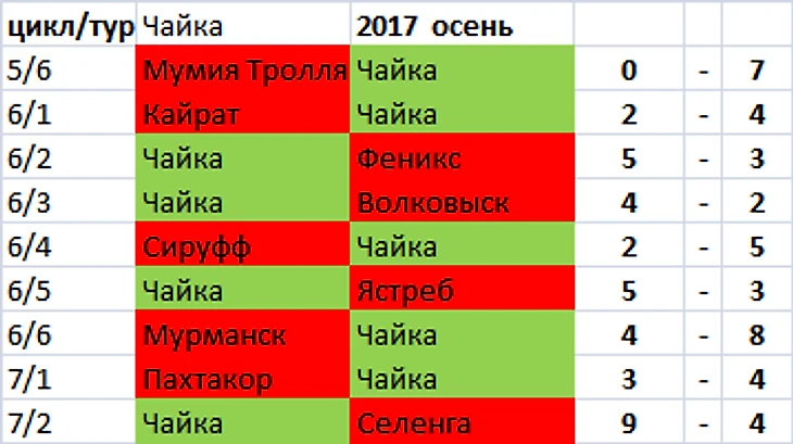 Она составила 16 игр и прервалась в 26-м туре дома от Тихого Дона 4-6.