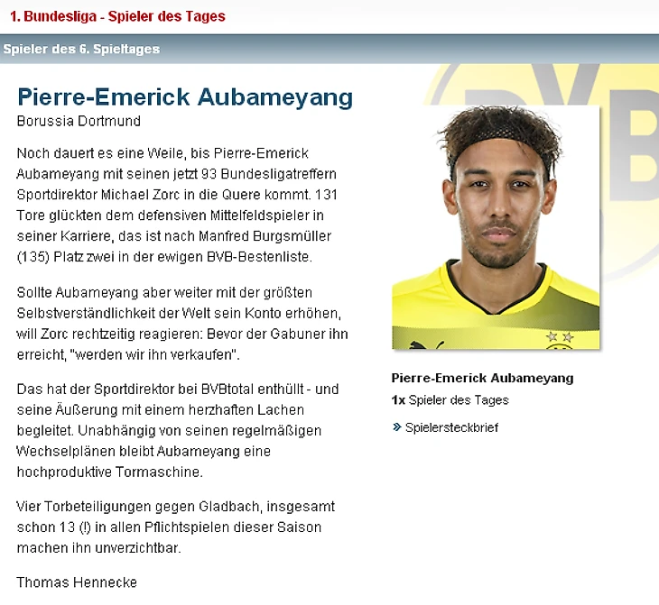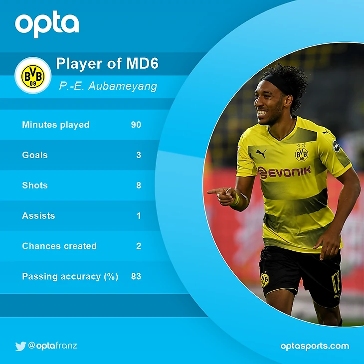 Обамеянг забил 11 голов в 9 официальных играх сезона 2017/18 – и ни один игрок Бундеслиги не забивал чаще его;