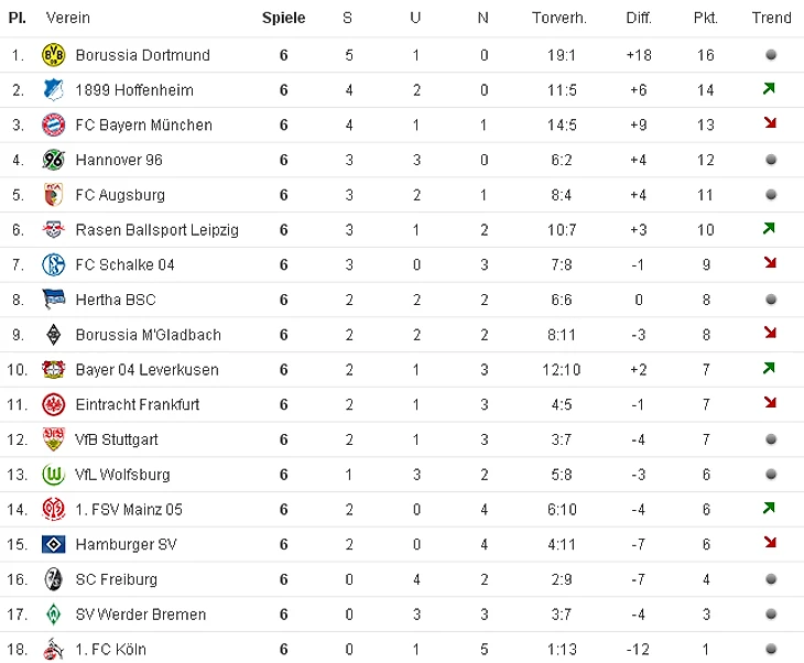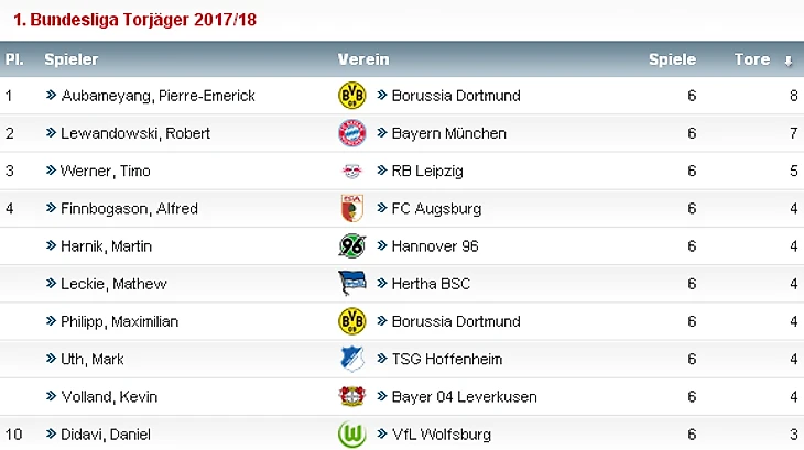 16 очков и разница мячей +18 после шести туров в Бундеслиге 2017/18 – это клубный рекорд для Боруссии Дортмунд;