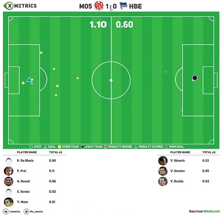 «Майнц» – «Герта» – это первая игра в Бундеслиге 2017/18, в первом тайме которой не были ни одного удара по воротам;