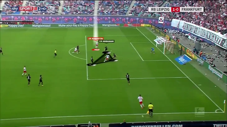 *первый гол «РБ» – пока Тимо Вернер собирает вокург себя хороводы, Огюстен осваивает гектар свободного пространства и ждет