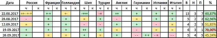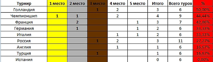 На этой неделе стали четвертыми в Голландии. Наиболее удачно по данному показателю выступаем именно в данном чемпионате (50% попаданий).