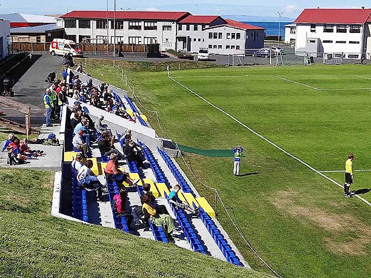 "ГРИНДАВИКВЁЛЛУР" - домашний стадион ФК "Гриндавик" (Гриндавик). Вместимость 1500