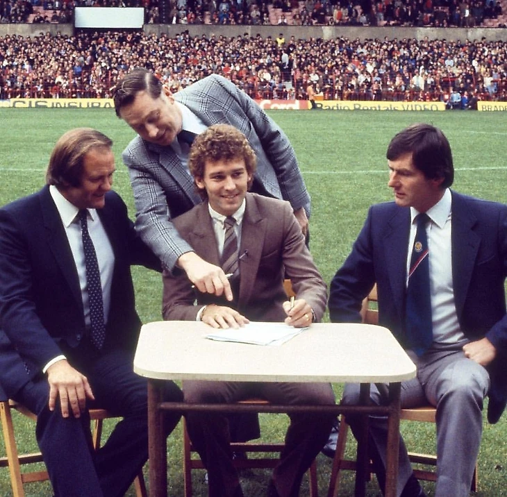 Брайан Робсон подписывает контракт с «МЮ» прямо на поле, 1981.