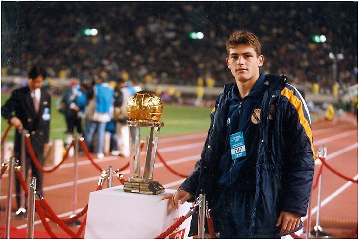 Икер Касильяс позирует на фоне Межконтинентального кубка, 1998