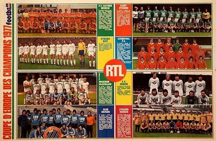 Участники 1/4 Кубка европейских чемпионов 1976/1977. Плакат с футбольного журнала.