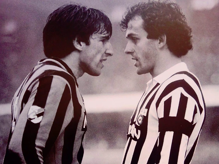 Сальваторе Баньи («Интер») vs. Мишель Платини («Ювентус»), 1983.