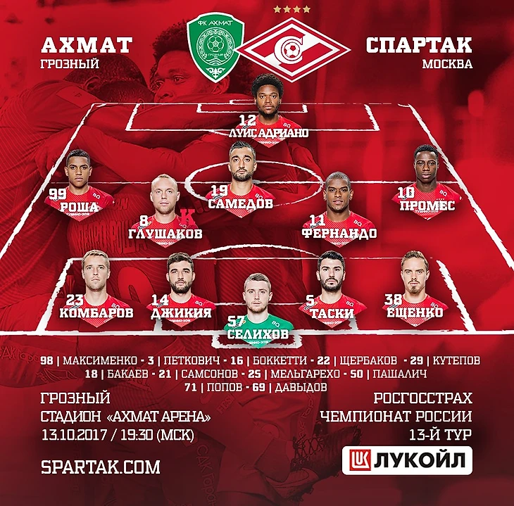 Стал известен стартовый состав красно-белых в матче 13-го тура РОСГОССТРАХ Чемпионата России в Грозном.