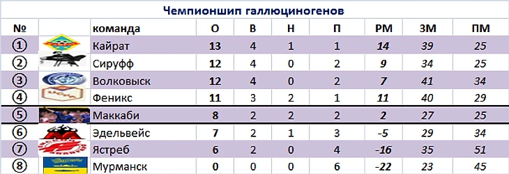 В итоге Кайрат стал первым, далее расположились Сируфф, Волковыск и Феникс.