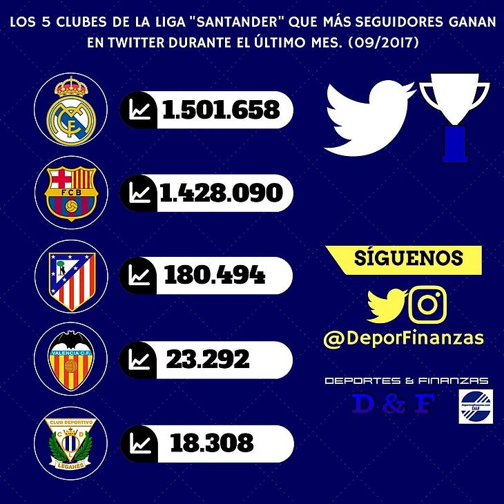 И правда Валенсийцы занимают 4 строчку по упоминаниям в твиттере среди клубов Ла лиги.