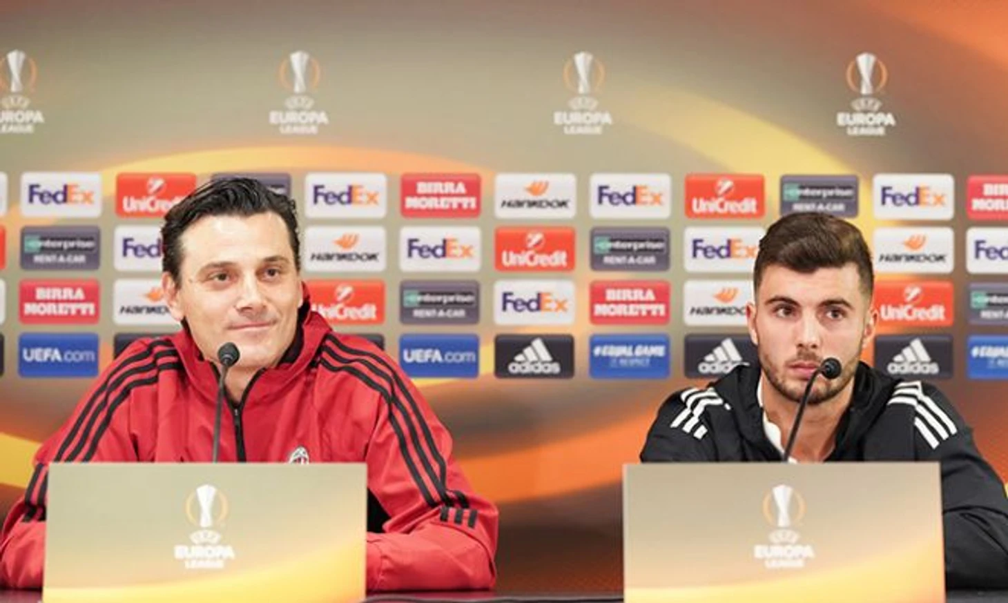 Алленаторе «Милана» Винченцо Монтелла и форвард Патрик Кутроне приняли участие в пресс-конференции накануне домашнего поединка против «АЕКа» в Лиге Европы.