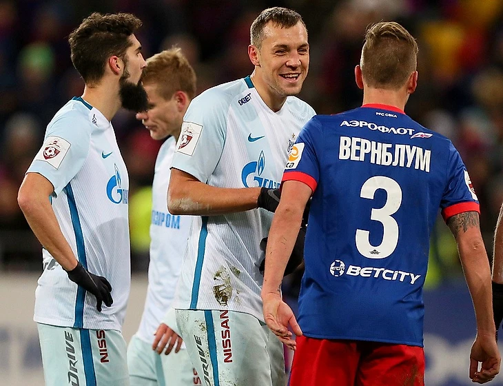 Сегодня была битва за 6 очков,а довольствовались лишь одним!ЦСКА впереди вышел с Витиньо,а Зенит с одним Кокориным впереди.Со старта армейцы агрессивно начали матч-уже на 2 минуте Алексей Березуцкий нанёс удар головой после навеса со штрафного.На 6 минуте вратарь гостей Лунёв получил травму после атаки армейцев,где Витиньо и Фернандес наносили удары.На 11 минуте Фернандес в атаке сбил Кришито,за что получил передупреждение,как и Акинфеев.прибежавший на разборки с арбитром.Затем снова армейцы силами Витиньо заработали угловой и штрафной,был прорыв и падение Щенникова.И лишь на 19 минуте была первая попытка питерцев прорваться,но Полоз не смог.Армейцы опять поднажали и опасные навесы Витиньо и Фернандеса стали снова беспокоить гостей.На 28 минуте впервые в матче итерцы пробили по воротам-это Полоз после подачи Ерохина.Снова пошли предупреждения-Алексей Брезуцкий сбил Кокорина,а Мевля Головина.В конце первого тайма были опасные атаки армейцев-это снова Фернандес с Витининьо,Натхо бил издалека.Питерцы отметились жёлтой карточкой Ригони против Алексей Березуцкого и попыткой прорваться в штрафную Кокорина и Ерохина.Во втором тайме вместо травмированного Лунёва вышел Лодыгин.Второй тайм начался с походов в штрафную Кучаева и удара Ригони,который отбил ногой Акинфеев.Затем был удар со штрафного Паредеса,который блокировали Вернблум и Березуцкий.Попытка вышедшего на замену Дзюбы пробить после передачи Кокорина не получилась.А затем Васин сбивает Кокорина и началась потасовка на поле.Паредес,Дзюба,Вернблум и Натхо получили жёлтые карточки от Вилкова.После этого снова возобновились опасные моменты.Подачу Паредеса отбил Акинфеев,а подачу Головина Витиньо не смог завершить.Затем подача Дзюбы и уже Кокорин не смог забить,на что ответил Головин после подачи Витиньо.А потом был момент,когда Акинфеев с защитниками не разобрались и Кокорин пробил во вратаря. в конце матча Васин с Дзюбой обменялись ударами головой по воротам.Такая вот боевая ничья!