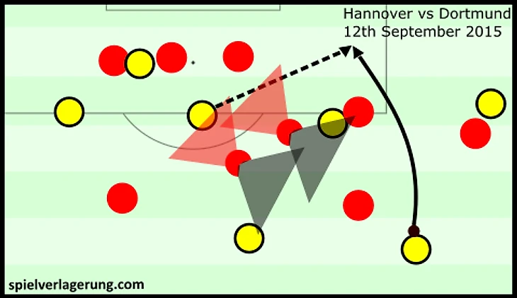 После того, как мяч переместился обратно в центр или в полуфланг, игроки, которые совсем недавно были рядом, снова должны изменить позиции. Постоянное перемещение между зонами заставляет их концентрироваться на мяче и терять нападающих. Поэтому неудивительно, что форварды часто свободны на подступах к штрафной, и могут спокойно обрабатывать мяч.
