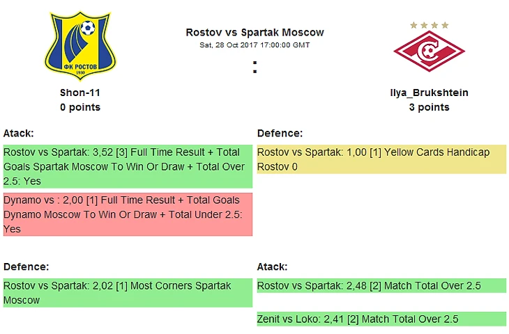 Shon-11, сделал 3 захода в непростом матче Тосно-Ростов и таки завоевал свою первую победу в турнире, ставочник он отличный. думаю вы все это видите, вот теперь и очками разжился, уверен во концове будет бороться за корону!