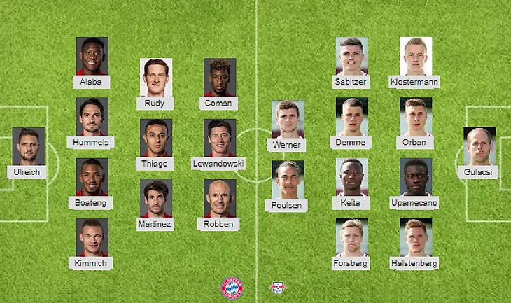 Возможные потери: Бавария: Нойер, Хуан Бернат, Т. Мюллер, Ф. Рибери, Пантович / РБ Лейпциг: -