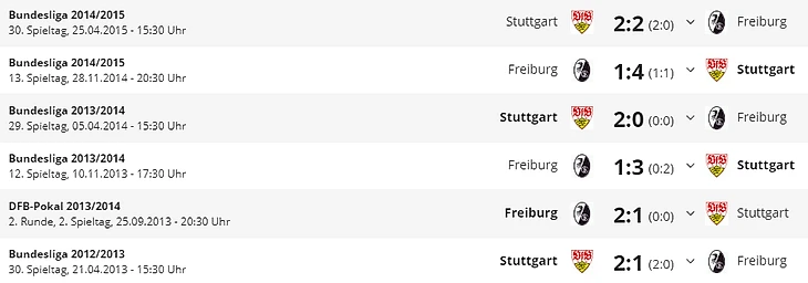 С вступлением в должность Кристиана Штрайха 29 декабря 2011 года “Фрайбург” заработал в Бундеслиге на 19 очков больше, чем “Штутгарт” (204 к 185, в каждой из 162 игр; между тем, обе команды были в течение одного сезона во второй Бундеслиге).