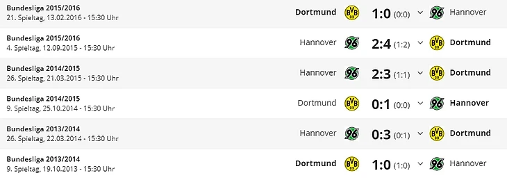 Последний раз “Ганновер” одерживал победу в домашней игре против “Боруссии” более шести лет назад (2:1 в сентябре 2011); три прошедшие домашние игры против “Дортмунда” были проиграны.