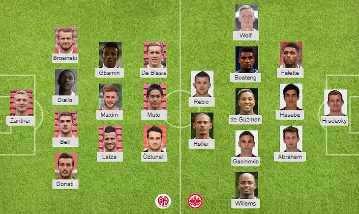 Возможные потери: Майнц: Адлер, Балогун, Бунгерт, Буссман, Хак, Хольтманн, Онисиво / Айнтрахт: да Коста, Регезель, Фабиан, Фернандеш, Маскарель, Мбуом, Майер, Чендлер